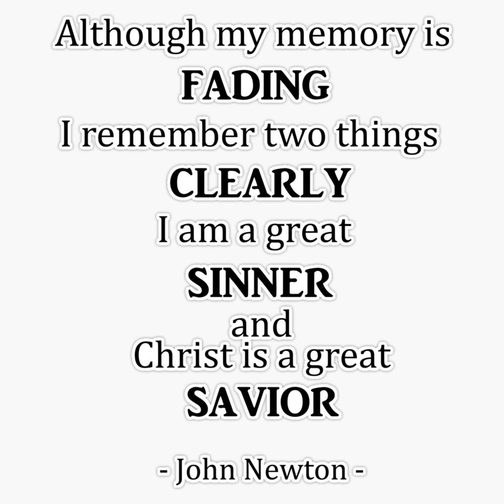 “Although my memory’s fading, I remember two things very clearly: I am a great sinner and Christ is a great Savior.” ― John Newton, Amazing Grace.