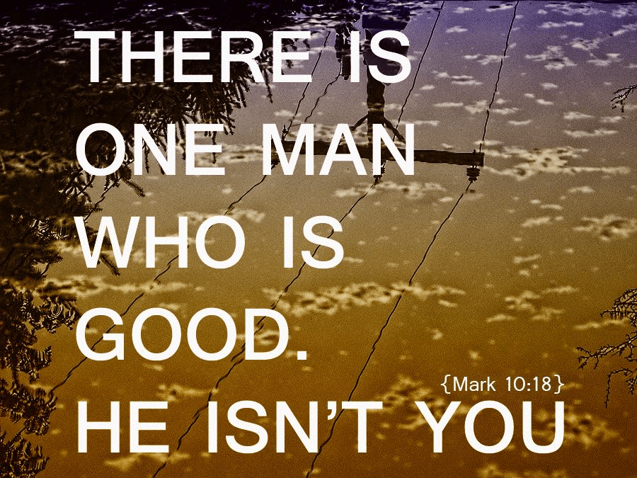 Mark 10:17–18 (ESV) says, “17 And as he was setting out on his journey, a man ran up and knelt before him and asked him, “Good Teacher, what must I do to inherit eternal life?” 18 And Jesus said to him, “Why do you call me good? No one is good except God alone.”