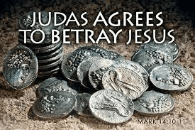 10 “Then Judas Iscariot, who was one of the twelve, went to the chief priests in order to betray him to them. 11 And when they heard it, they were glad and promised to give him money. And he sought an opportunity to betray him.” (Mark 14:10–11 (ESV)