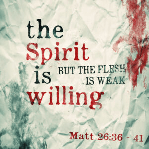 39 “And going a little farther he fell on his face and prayed, saying, “My Father, if it be possible, let this cup pass from me; nevertheless, not as I will, but as you will.” 40 And he came to the disciples and found them sleeping. And he said to Peter, “So, could you not watch with me one hour? 41 Watch and pray that you may not enter into temptation. The spirit indeed is willing, but the flesh is weak.” (Matthew 26:39–41 (ESV)