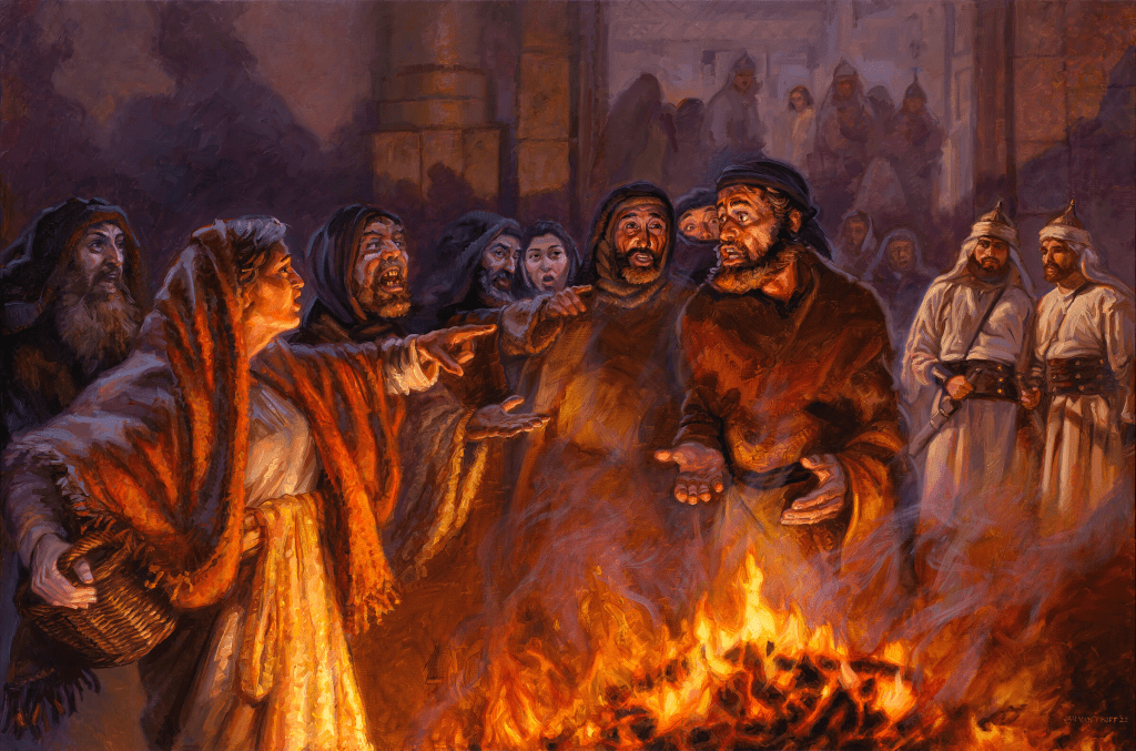 Peter’s first trial occurred by a night fire in the courtyard of the high priest’s residence. The guards who seized Jesus in Gethsemane kindled a fire. Nights in the dessert can become chilly and cold (John 18:18). Peter was warming himself by the fire. It was at that moment, which all four Gospels report, one of the servant girls of the high priest recognized Peter as one of Jesus disciples and said so. “You also were with Jesus the Galilean,” (Matt. 26:69). Luke wrote she looked at Peter closely (Luke 22:56). This was not a case of mistaken identity.