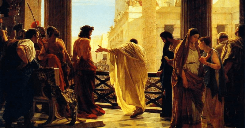 Ecce Homo! (Behold the Man) is an 1871 painting of Jesus Christ before Pontius Pilate by Antonio Ciseri. It is the artist’s depiction, one author describes, “of a moment woven into the fabric of salvation history, and into our very souls.”