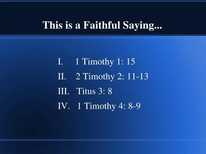 Paul has four of these faithful sayings. The first occurs in 1 Timothy 1:15, “This is a faithful saying, and worthy of all acceptance, that Christ Jesus came into the world to save sinners.”
