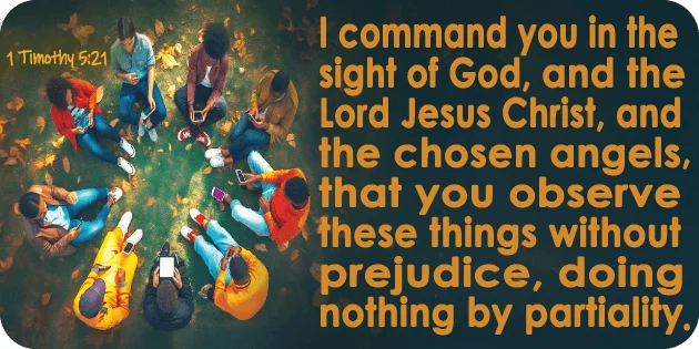 “In the presence of God and of Christ Jesus and of the elect angels I charge you to keep these rules without prejudging, doing nothing from partiality.” (1 Timothy 5:21 (ESV)