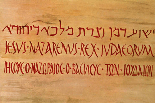18 There they crucified him, and with him two others, one on either side, and Jesus between them. 19 Pilate also wrote an inscription and put it on the cross. It read, “Jesus of Nazareth, the King of the Jews.” 20 Many of the Jews read this inscription, for the place where Jesus was crucified was near the city, and it was written in Aramaic, in Latin, and in Greek. 21 So the chief priests of the Jews said to Pilate, “Do not write, ‘The King of the Jews,’ but rather, ‘This man said, I am King of the Jews.’ ” 22 Pilate answered, “What I have written I have written.” (John 19:18–22 (ESV)